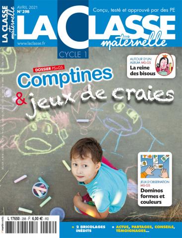 [n° ou bulletin] est un bulletin de / René-Louis Martin| Titre : | 298 - avril 2021 - Comptines & jeux de craies | | Type de document : | Livres, articles, périodiques | | Année de publication : | 2021 | | Langues : | Français (fre) | | Mots-clés : | enseignement maternel jeu pédagogie du jeu comptines jeux de craie tracés à la craie | | Résumé : | "Comptines et jeux de craies", le dossier de ce n° propose une dizaine de comptines directement inspirées de tracés spontanés réalisés par des élèves au cours de la récréation. Ces textes inducteurs se complètent de quelques pistes pédagogiques notamment dans les domaines de la motricité et du graphisme. | | Note de contenu : | Bonnes adresses et site internet