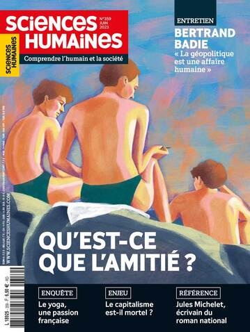 [n° ou bulletin] est un bulletin de Sciences humaines / François Dortier 359 - Juin 2023 - Qu'est-ce que l'amitié ? : Bertrand Badie : La géopolitique est une affaire humaine [Livres, articles, périodiques] . - 2023 . - 66 p. Sommaire détaillé Éditorial L'ami retrouvé Héloïse Lhérété, directrice de la rédaction Qu'est-ce que l'amitié ? Qu'est-ce que l'amitié ? Dossier coordonné par Cécile Peltier À la recherche de l'ami parfait Cyrille Bret Ce qu'en disent les philosophes Fabien Trécourt La biologie des liens affectifs Entretien avec Robin Dunbar Qui se ressemble s'assemble ? Lubomir Lamy Des premiers jeux aux dernières confidences Maud Navarre Quand l'amitié fait mal Dominique Picard et Edmond Marc Le temps des followers Claire Balleys Philosopher à quatre mains François Dosse Pour prolonger la lecture Actualité de la recherche Le yoga, une passion française Sylvain Marcelli Frédérique Aït-Touati, le théâtre des sciences Emmanuelle Picaud Flower Power Cécile Peltier Adolescence : il faut du sens pour être heureux Romina Rinaldi Mère connectée, bébé délaissé Romina Rinaldi Comment la fatigue est devenue phatique Philippe Zawieja Courir pour oublier ? Marc Olano Besoin d'un avocat ? Montez dans le bus ! Sylvain Marcelli La difficile féminisation de l'ENA Jean-Marie Pottier L'abandon de thèse, un problème d'encadrement Béatrice Kammerer Université : halte aux cours trop matinaux ! Emmanuelle Picaud culture pop Vice-versa, quand les émotions s'emmêlent Fabien Trécourt Enjeu Le capitalisme est-il mortel ? Thomas Lepeltier Entretien « La géopolitique est une affaire humaine » Entretien avec Bertrand Badie référence Jules Michelet, écrivain du roman national Jean-François Dortier le jour où... Emmanuel Mounier créa la revue Esprit François Dosse Livre du mois Histoire d'un empire nomade La Horde. Comment les Mongols ont changé le monde, Marie Favereau, Perrin, 2023, 432 p., 25 €. Livres Qu'est-ce qu'une vie qui a du sens ? Fabien Trécourt Le violonistes et le fœus Thomas Lepeltier Des travailleurs plus vulnérables Clément Lefranc Trois siècles de progrès dans l'art de tuer Laurent Testot La leçon d'écologie de Renart Laurent Testot Du cerveau à l'outil Sophie Archambault de Beaune Du renoncement au souci de soi Régis Meyran L'Empire colonial a-t-il été rentable ? Thomas Lepeltier La diplomatie à l'épreuve des voyous Tigrane Yégavian La politique des otages Nicolas Journet Un voile d'ignorance sur l'Afrique Gérald Gaillard Des cartes mentales persistantes Tigrane Yégavian le mot qui fâche Time out Nicolas Journet Courrier des lecteurs Adam Smith et Hannah Arendt Nicolas Journet Langues : Français (fre)