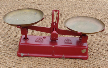 et également de balance à poids, grâce au couvercle fermant chaque bac devenant un plateau.