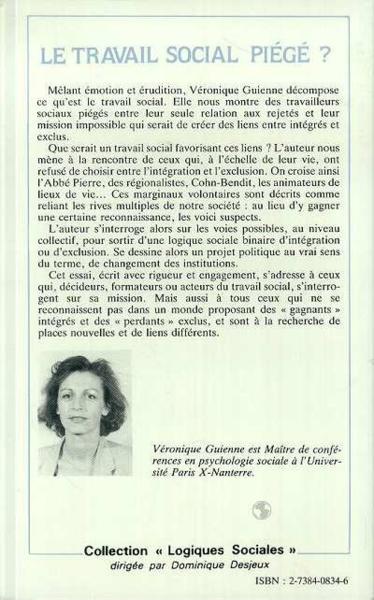 Titre : Le Travail Social Piégé Type de document : Livres, articles, périodiques Auteurs : Véronique Guienne, Auteur Editeur : Éd. L'Harmattan Année de publication : 1990 Collection : Logiques sociales ISBN/ISSN/EAN : 978-2-7384-0834-1 Langues : Français (fre) Index. décimale : 360 Service social Le Travail Social Piégé [Livres, articles, périodiques] / Véronique Guienne, Auteur . - [S.l.] : Éd. L'Harmattan, 1990. - (Logiques sociales) .