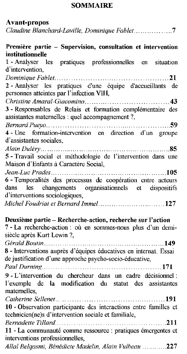Praticiens et décideurs disposent ainsi d'un ensemble de points de repère utiles pour promouvoir dispositifs et pratiques affichant une double visée: l'aide, le soutien ou encore l'accompagnement au changement social et la production de connaissances sur les processus sociaux.Réservation